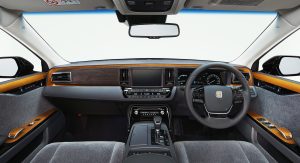 Still limited to the Japanese market, the flagship saloon carries an evolved styling, albeit on a larger scale, as it’s now 5,335mm (210in) long, 1,930mm (76in) wide, and 1,505mm (59.2in) tall, with a 3,090mm (121.6in) wheelbase.
