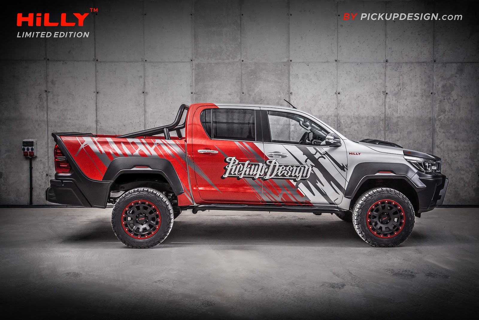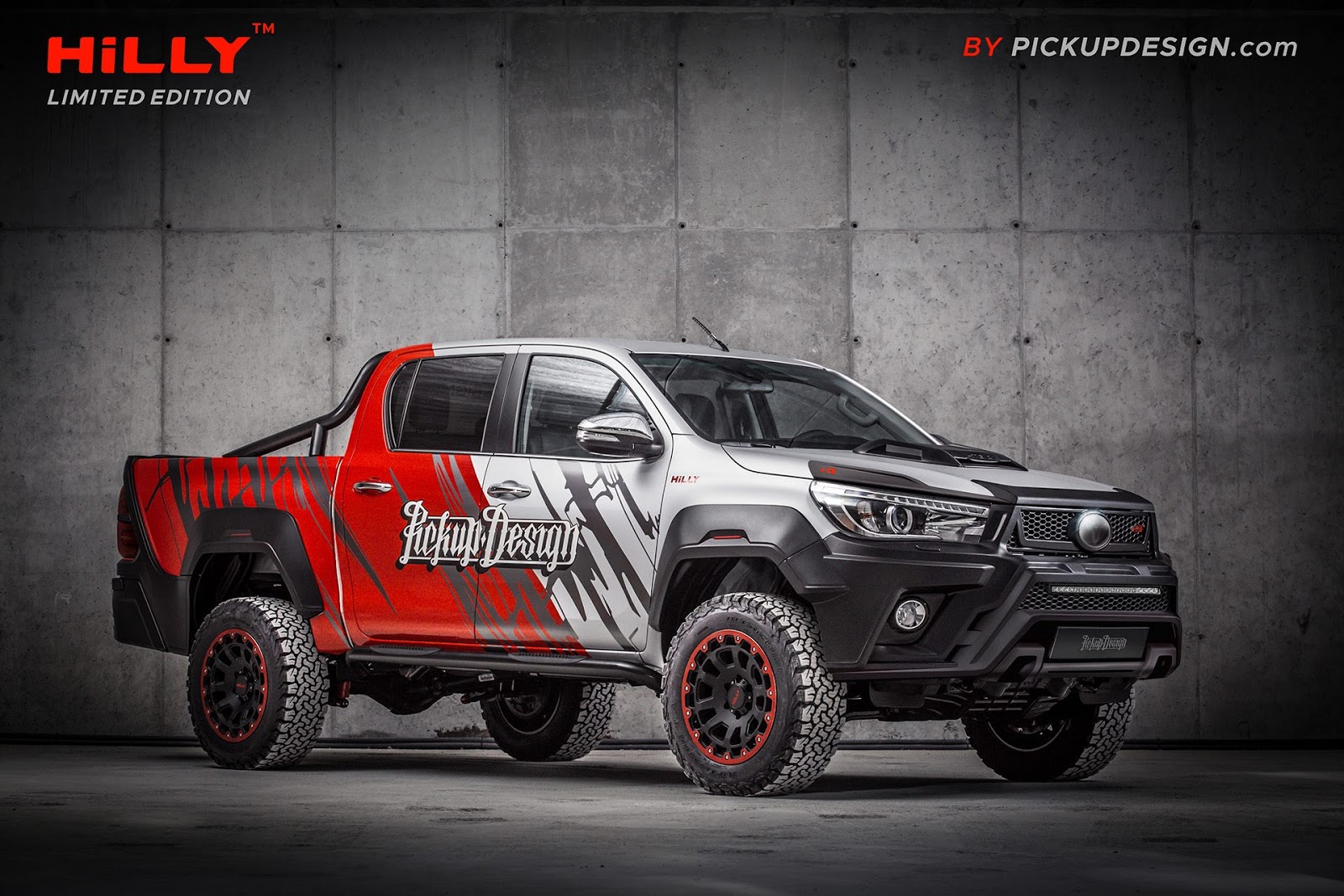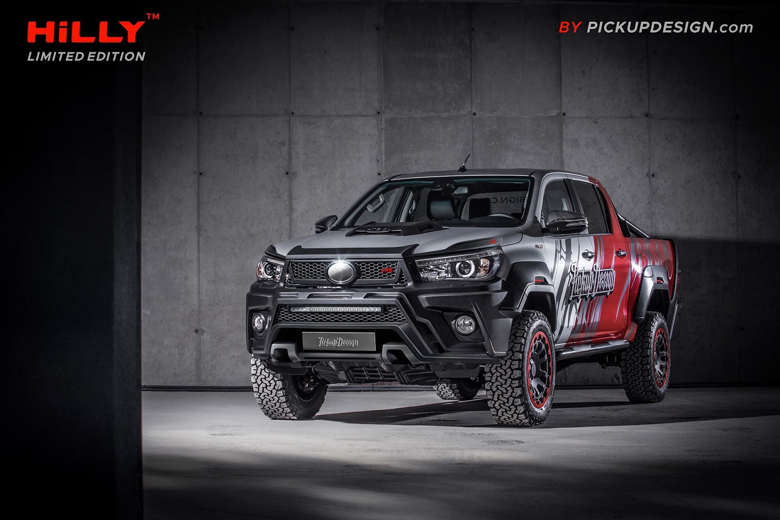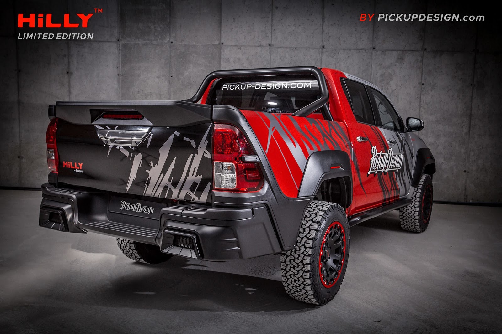 Speaking of the Hilux’s exterior, it has become barely recognizable. The modifications begin with an all-new front fascia with a custom grille and air intakes, LED light bar, new fog lights and an extremely aggressive bumper that you’d only expect to see from TRD.