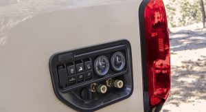 Elsewhere, the truck has been equipped with LED auxiliary lights, an onboard air compressor, and a built-in water tank. Designers also installed a refrigerator/freezer, aluminum storage cases, and NATO-style fuel cans.