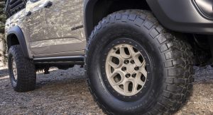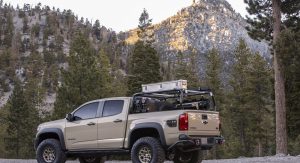 The Colorado ZR2 AEV concept will be joined by the ZR2 Race Development Truck. It features a 1.5-inch body lift and a 3.6-liter V6 engine which has been outfitted with a new air intake and a performance exhaust system. Other highlights include a steel driveshaft, skid plates, and 33-inch Goodyear Wrangler MT/R tires.