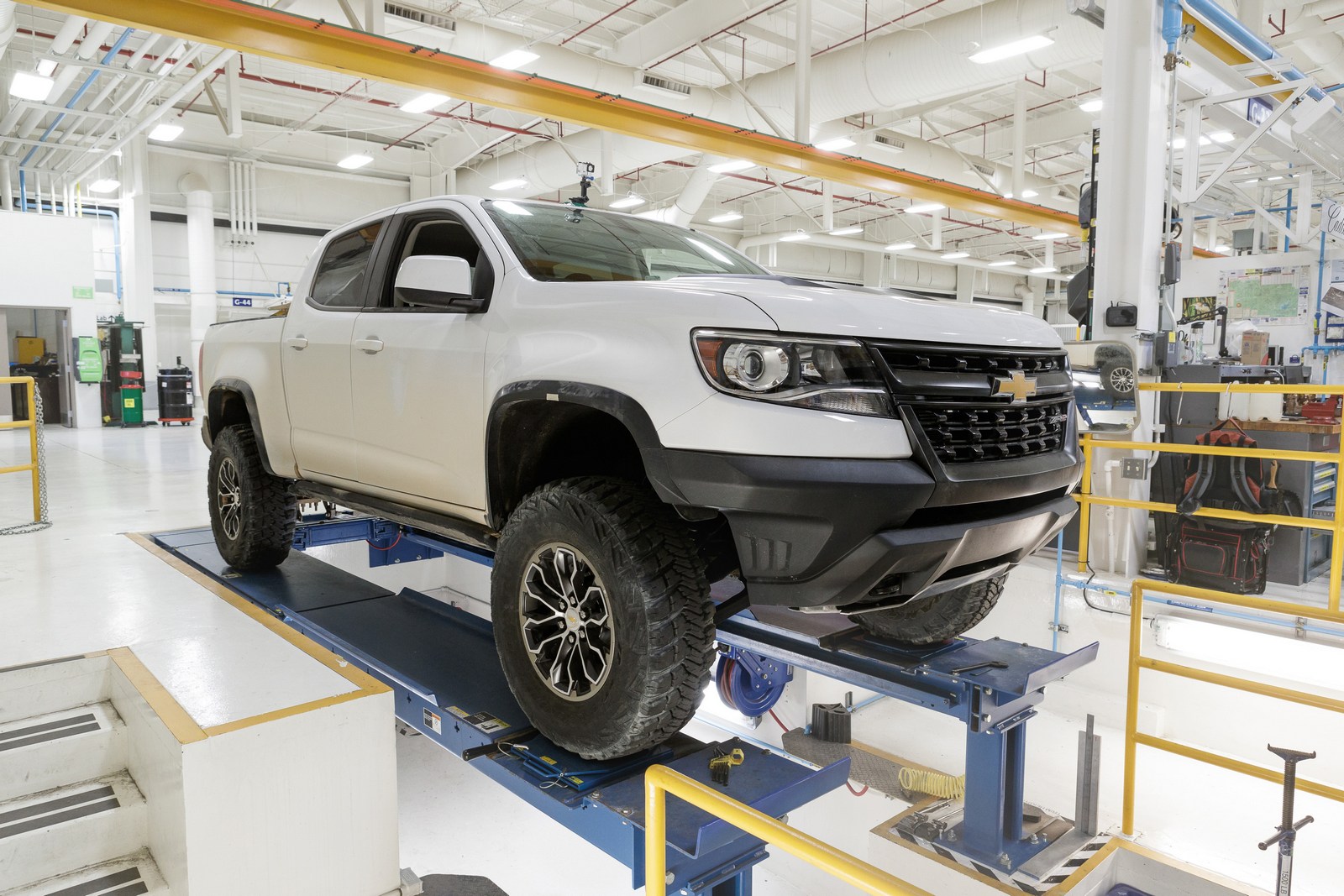 The Colorado ZR2 AEV concept will be joined by the ZR2 Race Development Truck. It features a 1.5-inch body lift and a 3.6-liter V6 engine which has been outfitted with a new air intake and a performance exhaust system. Other highlights include a steel driveshaft, skid plates, and 33-inch Goodyear Wrangler MT/R tires.