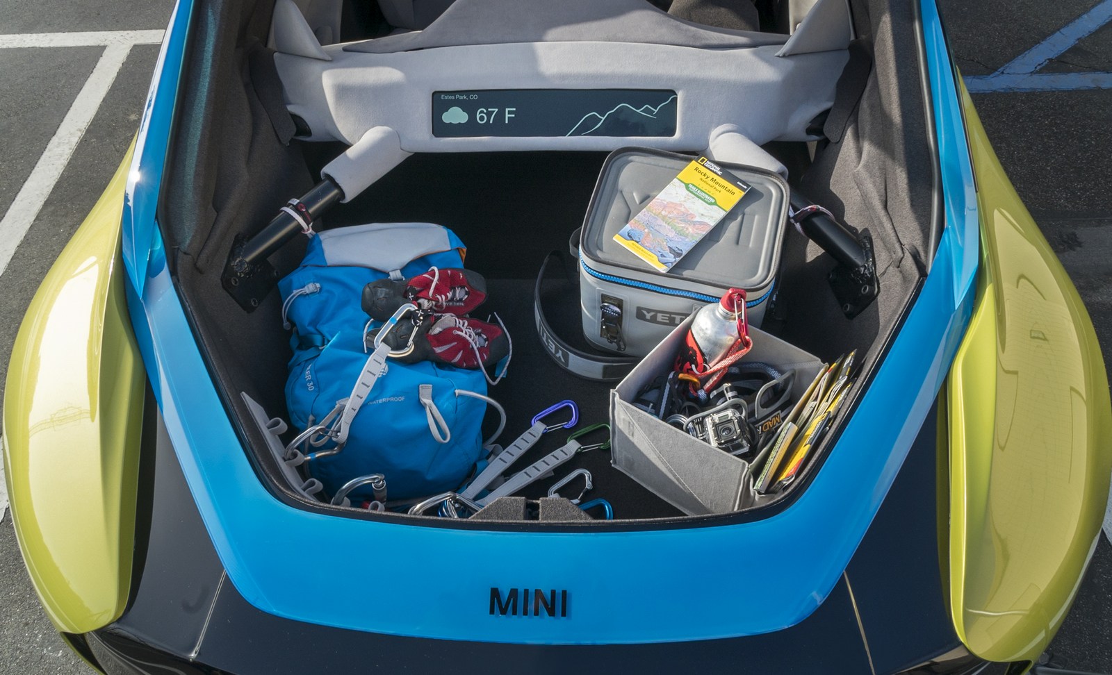 The interior is relatively sparse as it features a handful of seats and a floating dashboard which houses a “personal virtual companion” called MINI Face. More than just a pint-sized Templeton Peck, the MINI Face anticipates the needs of the driver and presents relevant information on a holographic display which has multiple layers. The system also features hand gesture recognition technology.