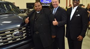 While he was there, Ford presented Harvey with an all-new 2018 Expedition to keep, so that he could get back to the good work he was doing and start rebuilding the Towers of Hope Church of God in Christ, where he’s described as the prophet and pastor.