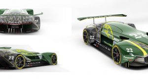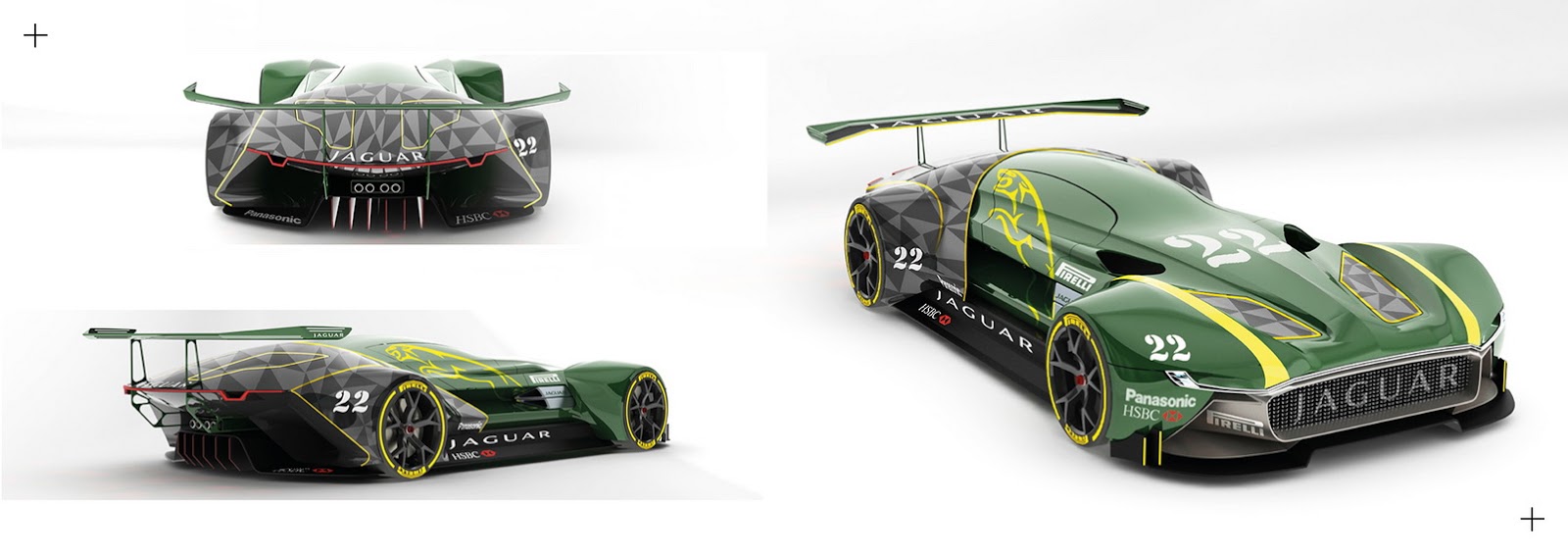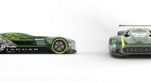 Unlike the road version, which seems to have an active aero wing at the back, the track-car has a fixed rear wing, racing tires and an instantly recognizable livery. The taillight graphics are also quite interesting, as a futuristic representation of what we currently see on pretty much all Jaguar models, only the two light clusters don’t actually meet in real life.