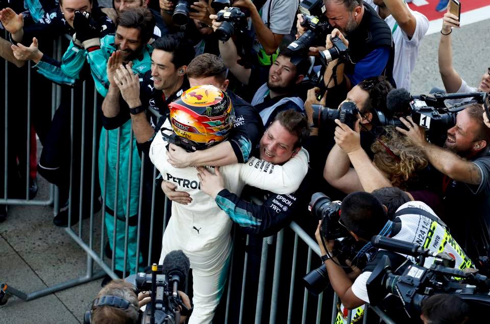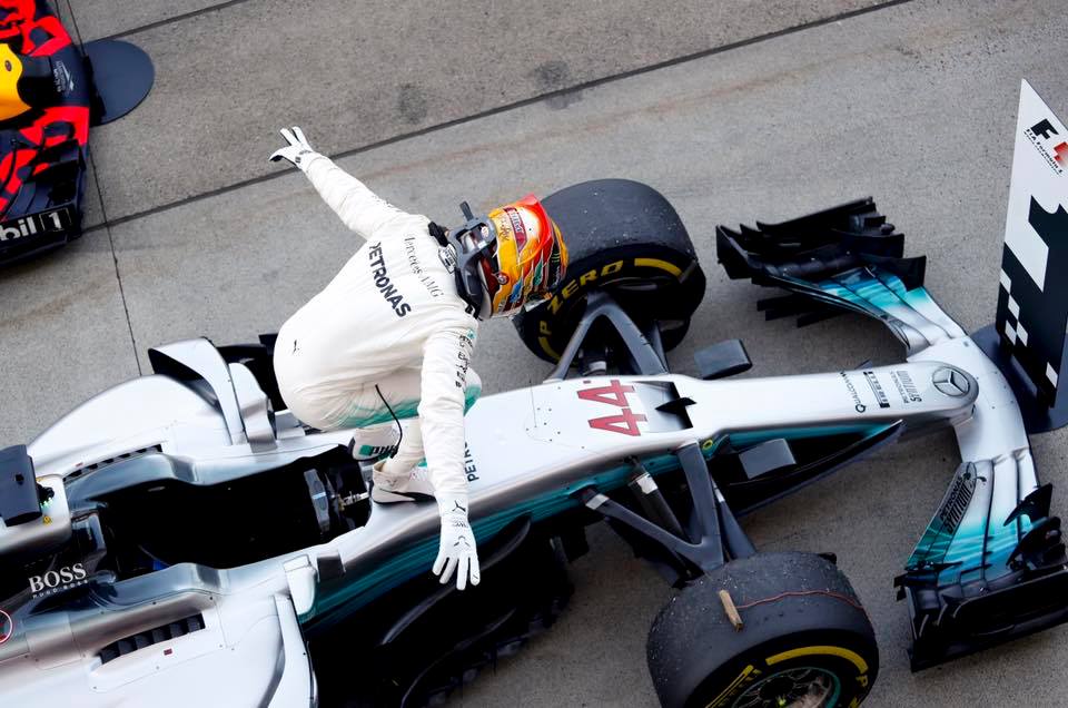 Following his win and Vettel’s retirement, Hamilton’s stranglehold on the championship has increased to 59 points with just four races remaining.