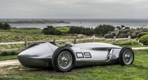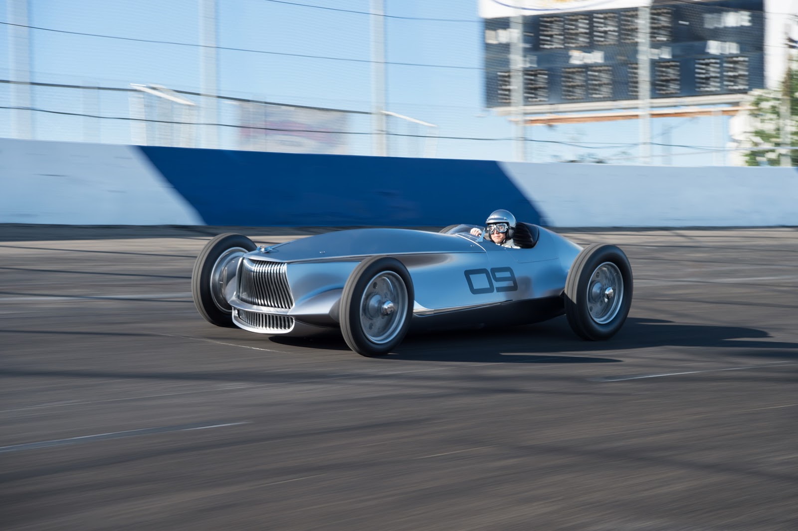 Infiniti’s Prototype 9, a retro open-wheeled roadster concept, went on display at Car Classic 2017 at the ArtCenter College of Design.