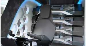 The cylindrical storage compartments take up a lot of interior space but this is a delivery vehicle and it has only been designed to accommodate a single driver. On seated behind the retractable steering wheel, drivers will a find a high-tech head-up display which projects driving information onto the base of the windscreen.