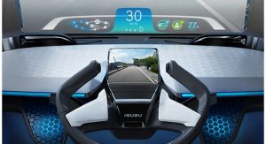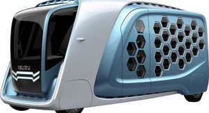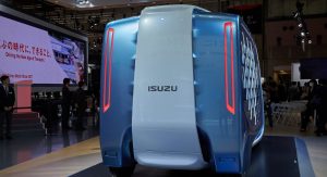 The honeycomb pattern isn’t simply a design exercise as each window is actually its own storage compartment. Isuzu says this provides a “good compromise between strength and space needed for storage.”