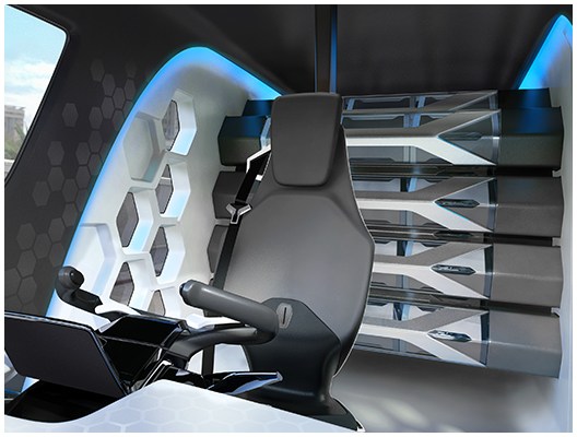 The cylindrical storage compartments take up a lot of interior space but this is a delivery vehicle and it has only been designed to accommodate a single driver. On seated behind the retractable steering wheel, drivers will a find a high-tech head-up display which projects driving information onto the base of the windscreen.