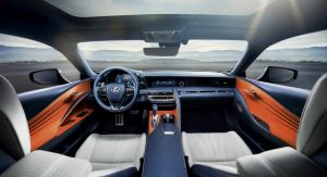 Moreover, its interior is dominated by the Breezy Blue color combination, with mid-blue semi-aniline leather that comes in contrast with the fine leather upholstery and orange trim. Lexus’ Premium Navigation and Climate Concierge are offered as standard, along with the Pioneer sound system and Lexus Safety System+.