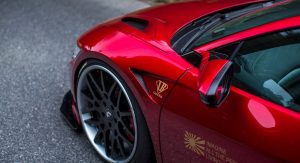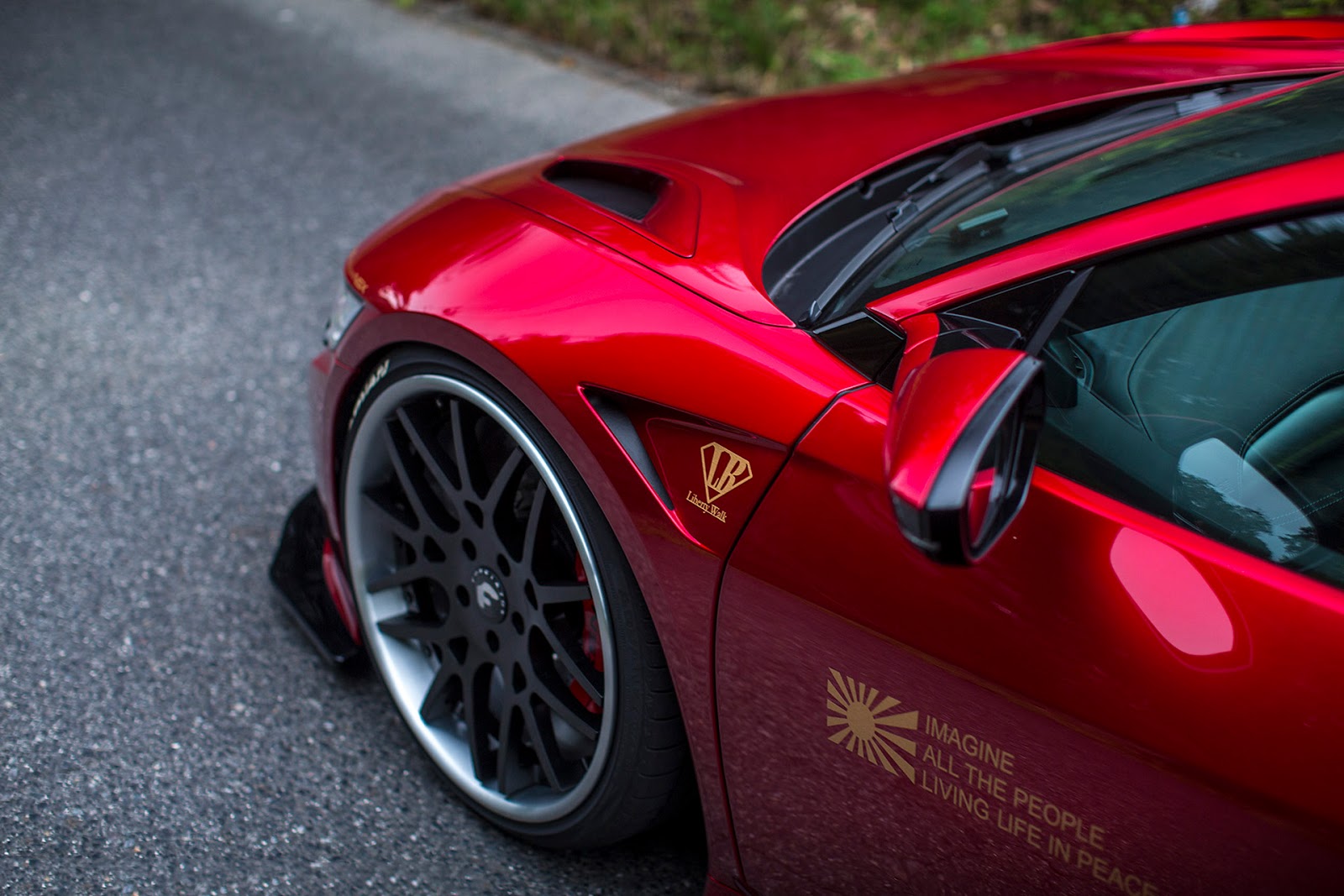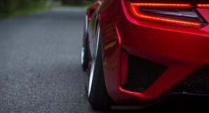 Although the car may look wider than a typical NSX, it isn’t. Rather than fitting flared wheel arches like usual, Liberty Walk has instead opted for a set of wide, aftermarket wheels with an aggressive offset to create the impression of a widebody kit being fitted.