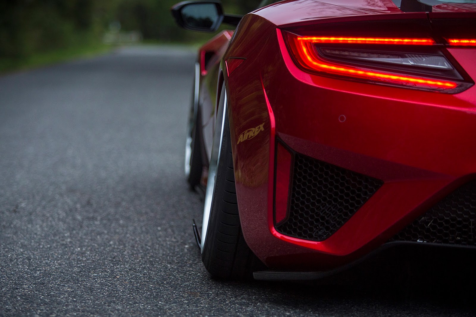 The most obvious modification is the implementation of a towering rear wing which totally transforms the look of the car and surprisingly, actually suits the NSX quite well. Elsewhere, Liberty Walk has fitted an air suspension kit courtesy of AirRex to lower the ride height.