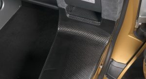 As for the interior, there’s the in-house manufactured carbon race seats trimmed in black Alcantara (with contrast red or yellow stitching), exposed aluminum and carbon fiber elements, plus a new carbon fiber instrument binnacle cover. Options include the Alcantara steering wheel and sill covers, leather or tartan trim packs for seats or door panels, and an in-car entertainment system featuring iPod connectivity and Bluetooth functionality.