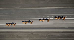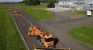 Automating this particular task would allow airports to clear their runways quickly and precisely, reducing (if not completely eliminating) issues of visibility and coordination in inclement weather by linking the vehicles remotely using dual GPS receivers and the latest vehicle-to-vehicle communication technology.