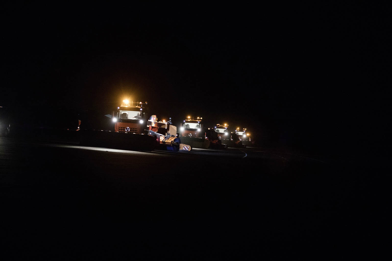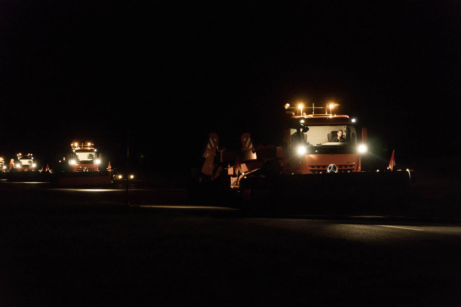 Automating this particular task would allow airports to clear their runways quickly and precisely, reducing (if not completely eliminating) issues of visibility and coordination in inclement weather by linking the vehicles remotely using dual GPS receivers and the latest vehicle-to-vehicle communication technology.