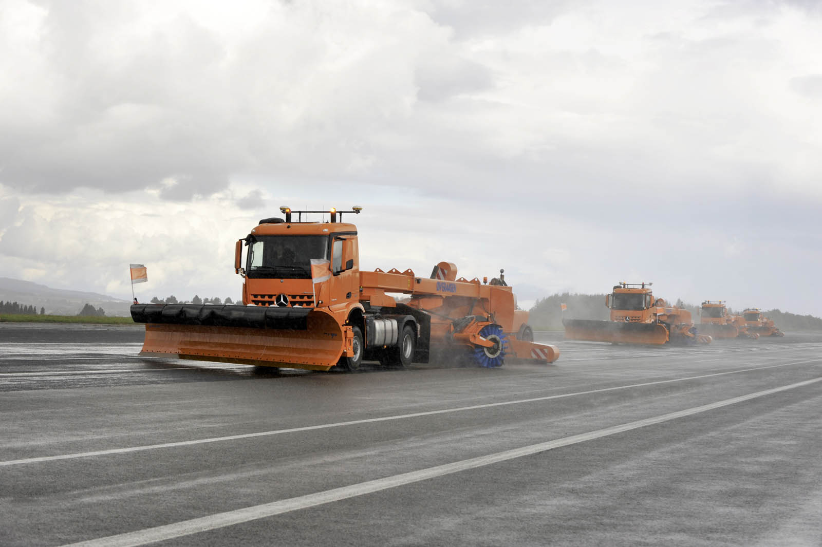 In its latest exercise, Mercedes-Benz is demonstrating a motorcade of self-driving trucks equipped to clear snow off of airport runways. And even the Luddites among us would have to admit that it makes a lot of sense.