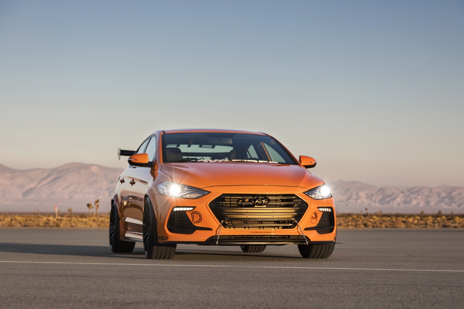 Underneath all the aftermarket mods is a Hyundai Elantra Sport, featuring a methanol injection intake, custom exhaust and intercooler, a tuned suspension and a full aero kit.