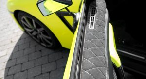 Fittingly, a healthy dose of matte carbon fiber accents can be found throughout, including on the A-pillars, dashboard, center console and doors. To match the vehicle’s fluro yellow wrap, Neidfaktor also added color-matching grab handles.