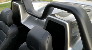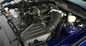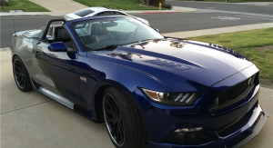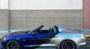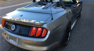 The 2016 Neiman Marcus Edition Mustang Convertible packed a 5.0-liter V8, supercharged by Roush to over 700 horsepower, all channeled (despite statements to the contrary) to the rear wheels through a six-speed manual. It also featured an upgraded chassis, exhaust, rolling stock, aero, and bodywork – complete with silver and blue paintjob and a removable rear cowling.