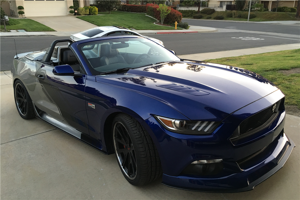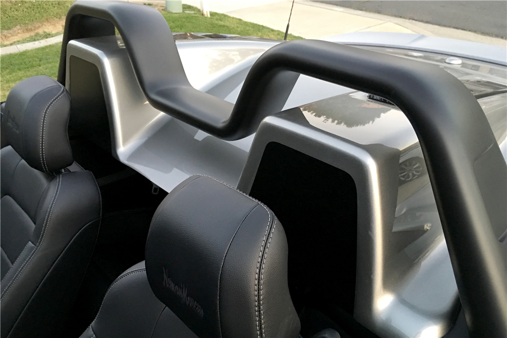 The 2016 Neiman Marcus Edition Mustang Convertible packed a 5.0-liter V8, supercharged by Roush to over 700 horsepower, all channeled (despite statements to the contrary) to the rear wheels through a six-speed manual. It also featured an upgraded chassis, exhaust, rolling stock, aero, and bodywork – complete with silver and blue paintjob and a removable rear cowling.