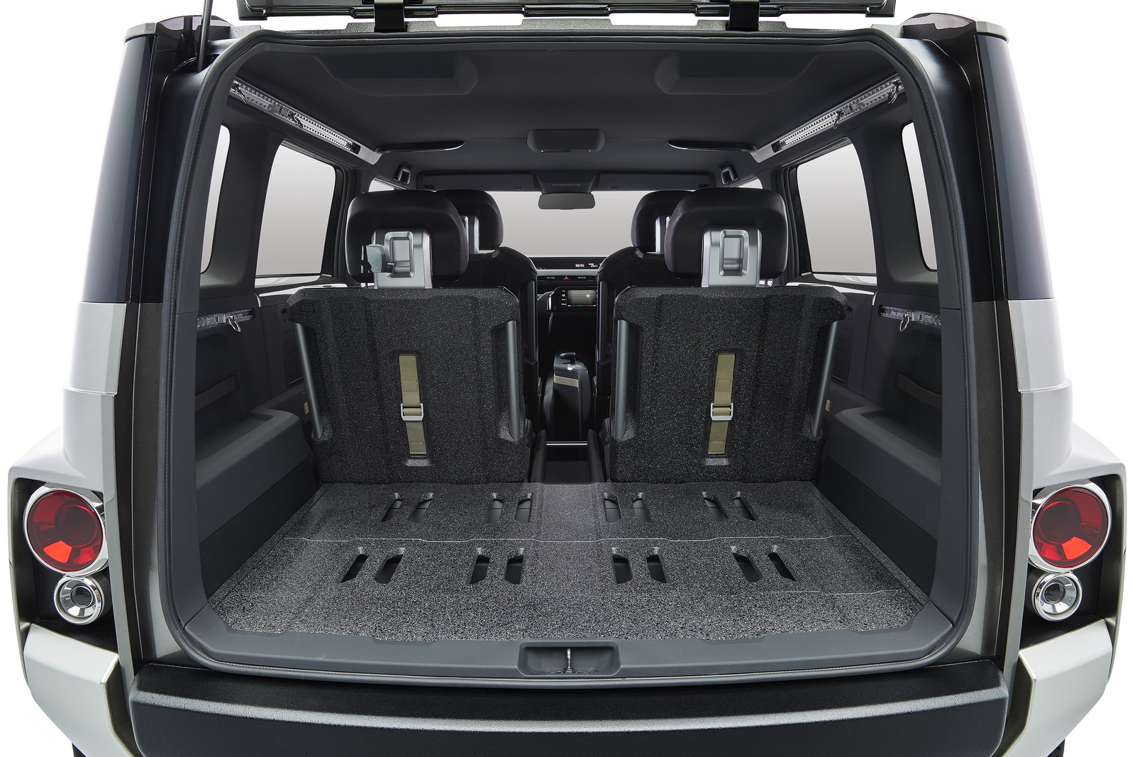 It features a boxy design, special coating used on the hood, roof, and fenders to protect them against scratches and dirt, sturdy suspension, and 20-inch wheels, wrapped in chunky tires, which, combined with the on-demand all-wheel drive system will help it get out of some muddy situations.