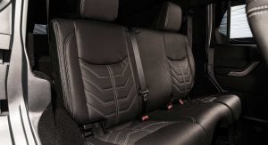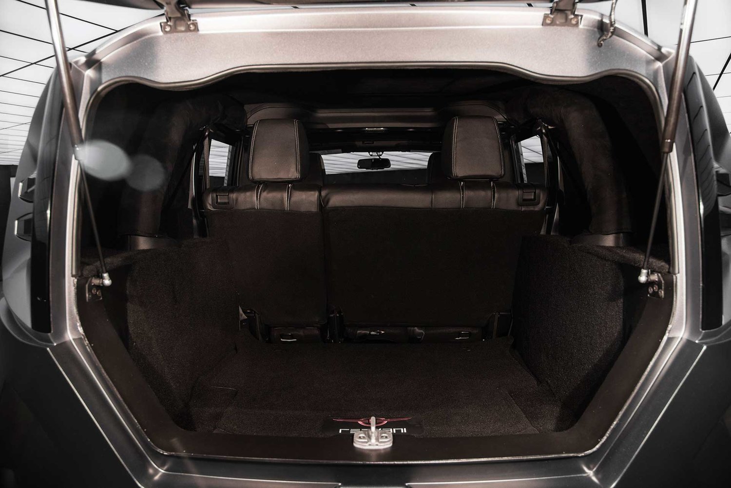 Contrary to the flashy exterior, the cabin features a rather toned-down design, featuring a five-seat layout, leather seats, an infotainment system sitting in the middle of the dashboard, and what appears to be a single-zone climate control. Additionally, for improved access to the rear seats and some extra visual credit, Rezvani’s Tank also has ‘suicide’ rear doors.