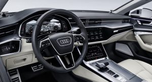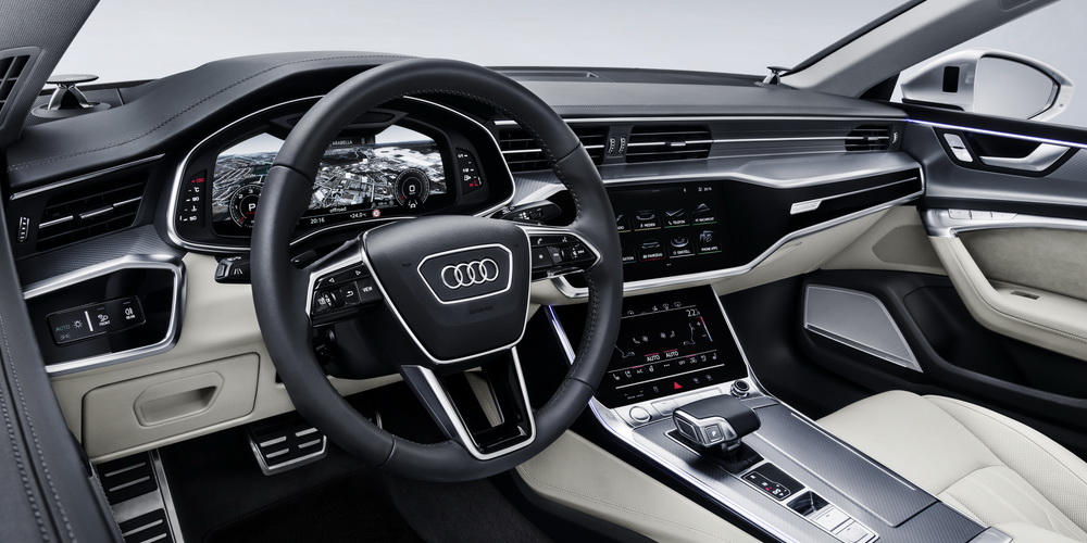 On the new A7, Audi went with an A8-styled upper dash, with some minor differences here and there. Tech-wise, it’s got all the goodies you could want, like the Virtual Cockpit, the two large touchscreen displays, head-up display, voice control tech, ambient lighting, plus a wide range of advanced driver assistance systems, including Audi AI.