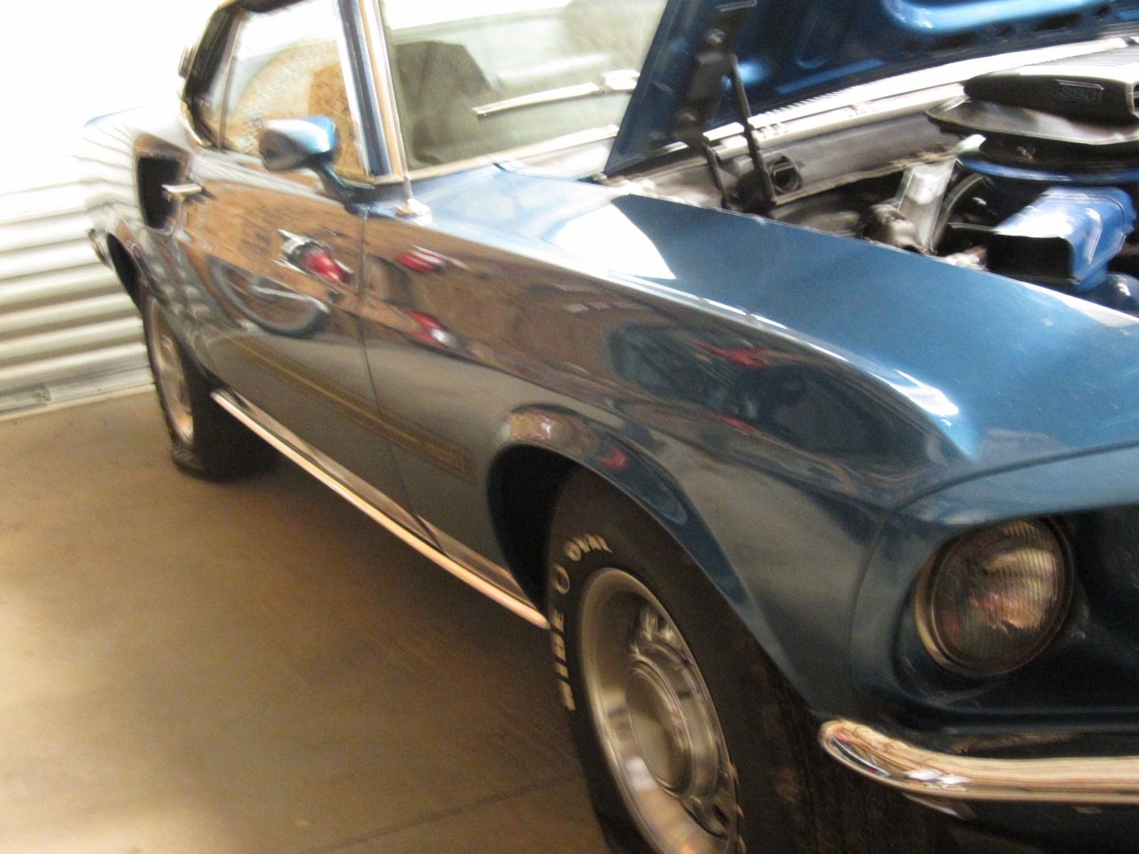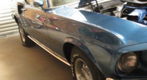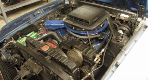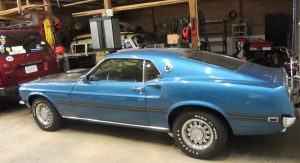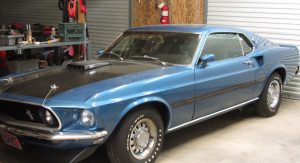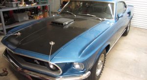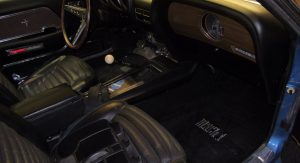 Sitting under the Mustang’s Shaker Hood is Ford’s 390-4V V8 engine delivering approximately 320 hp through a four-speed transmission. The car also has bucket seats, air conditioning and is painted in a stunning color dubbed Acapulco Blue.