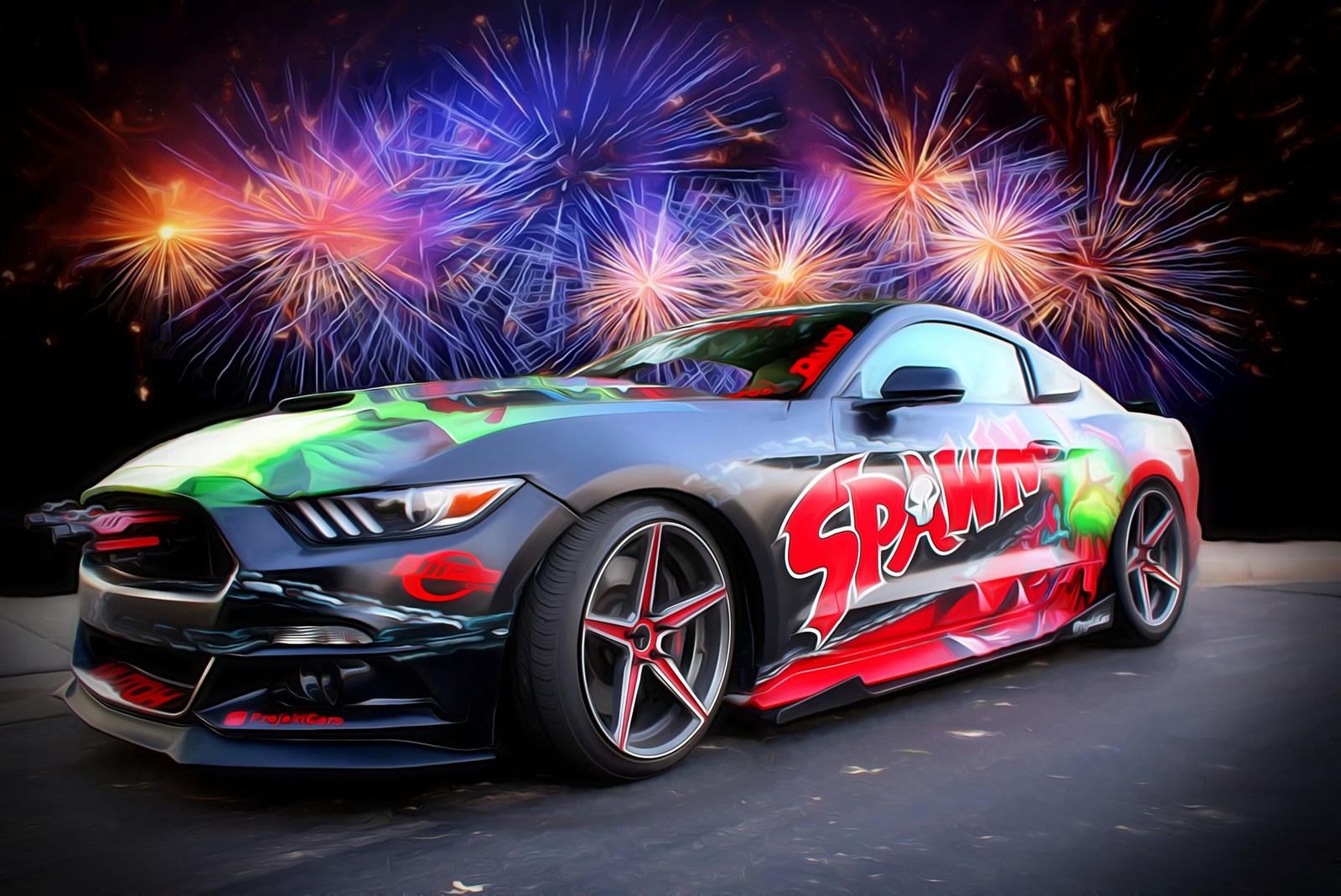 The company didn’t say much about the vehicles but the first model is a supercharged Ford Mustang which features a front splitter, aerodynamic side skirts, and a ram air hood. The car also has a custom paint job, five-spoke alloy wheels, and fake machine guns coming out of the grille.