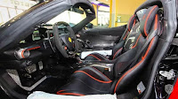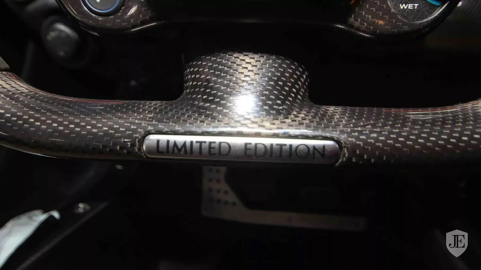 Like the exterior, the cabin is also rather special. It includes black leather on the seats with bright red accent piping and stitching. Elsewhere, there is black Alcantara on the steering wheel, carbon on almost every other component and a set of gorgeous aluminum pedals.