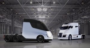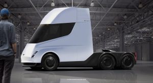 Other interesting design features of the Tesla semi includes its aerodynamic wheel covers and the availability of a large wind deflector which can be fastened to the top of the truck.