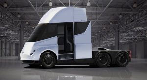 These renderings are based on the alleged Tesla semi prototype recently snapped on the back of a flatbed in the U.S. As such, we get a chance to see how the electric automaker has employed a raked windscreen and side windows that taper upwards. Additionally, the lack of a front grille will ensure the Tesla semi stands out and looks unlike anything else.