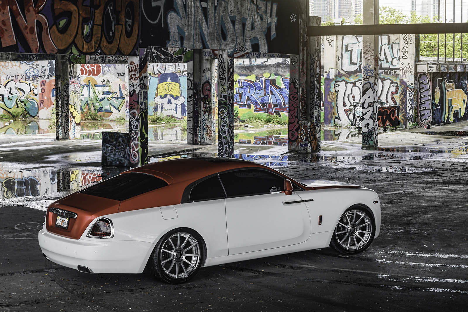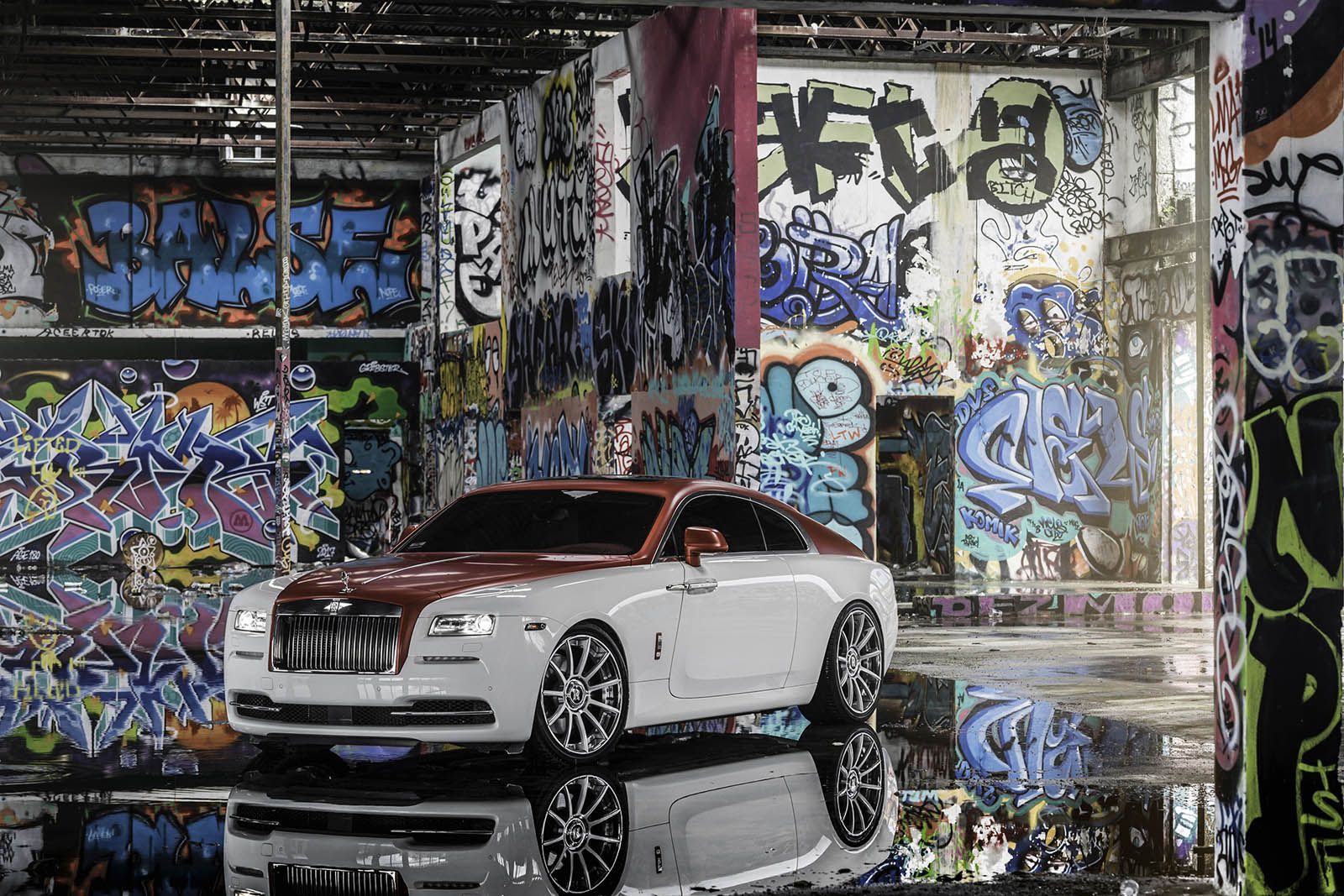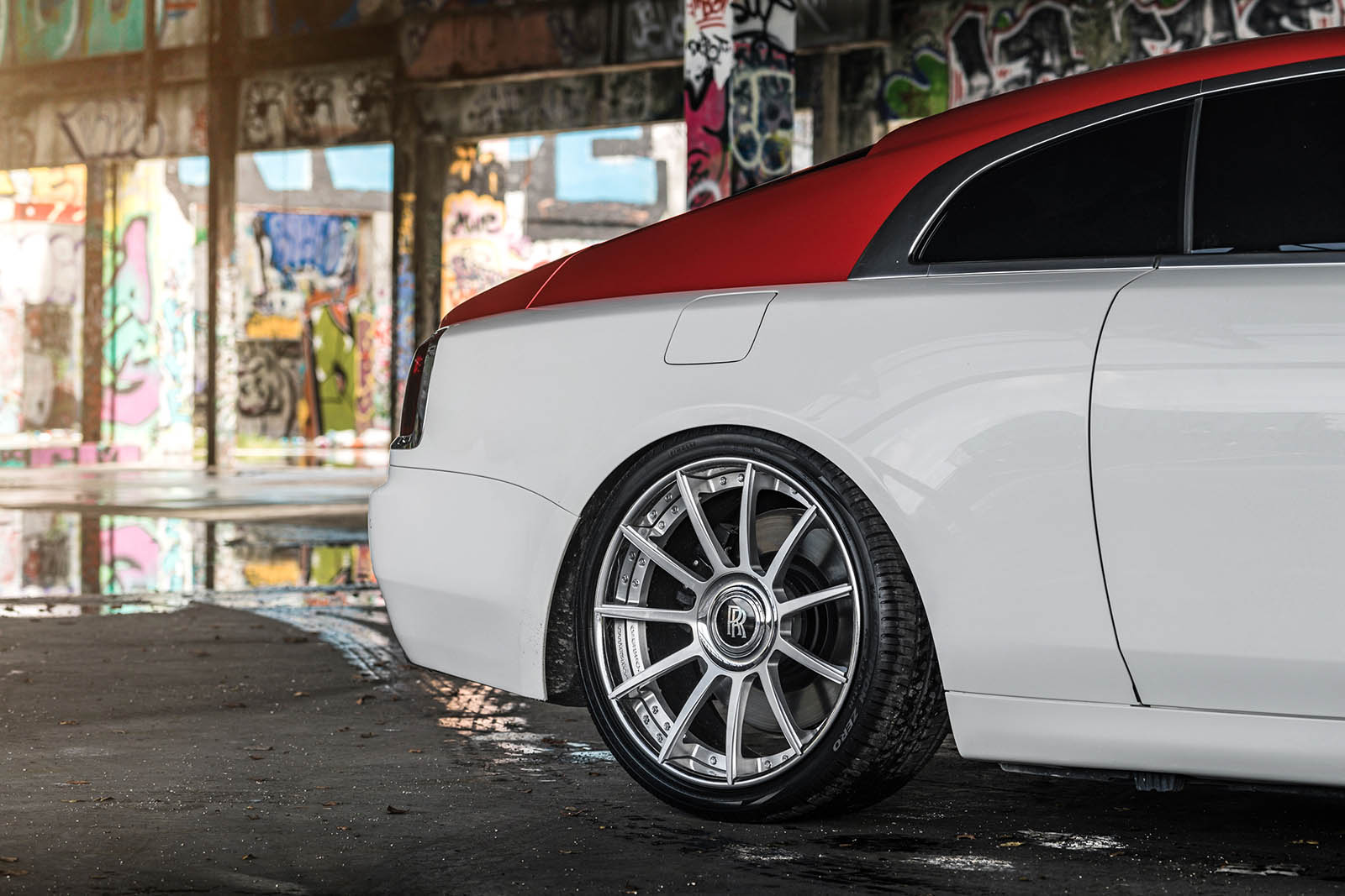 Keeping things classy but with a little extra dose of flash, this Wraith was done up by MC Customs with a classic white lower body and a metallic candy-apple red upper.