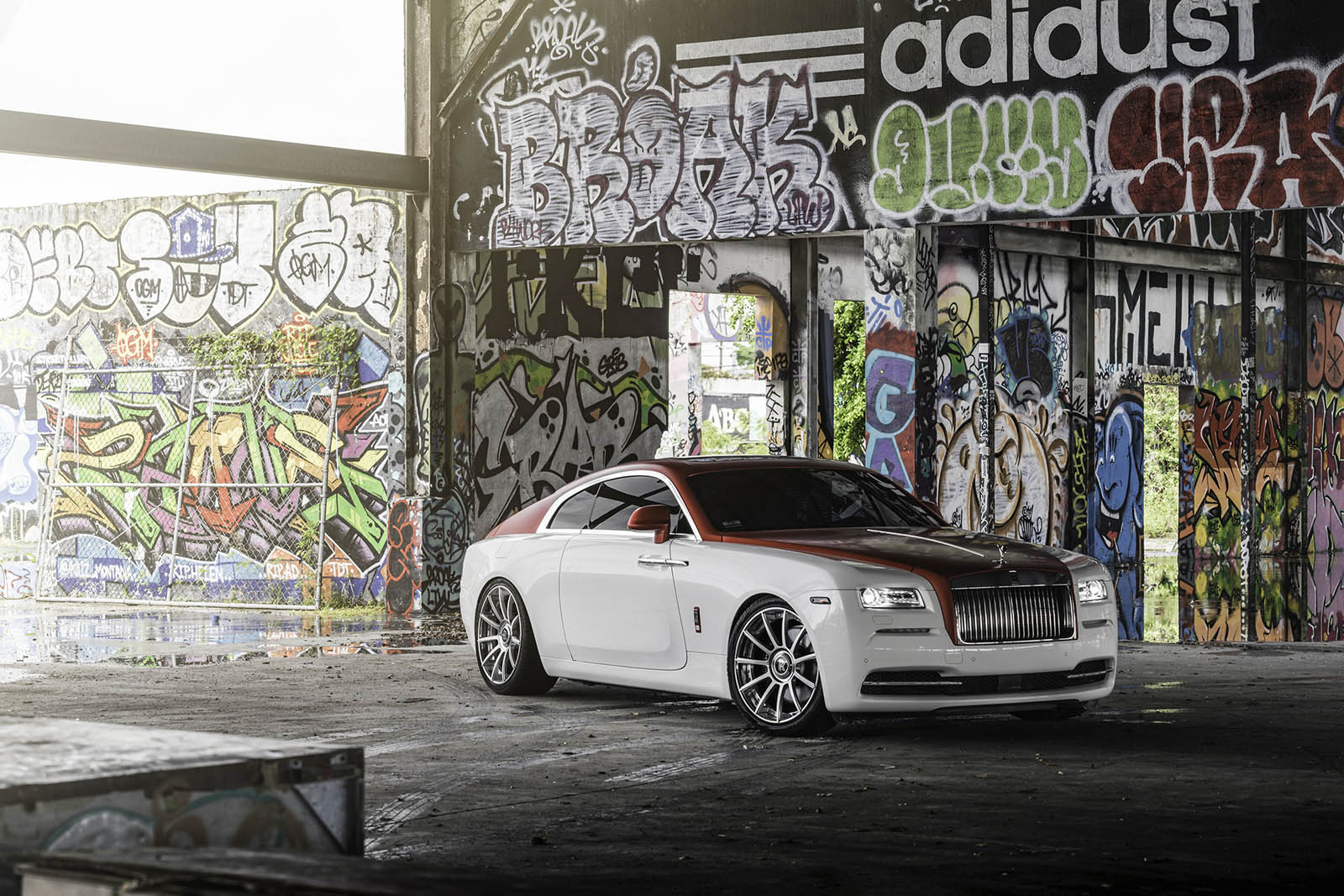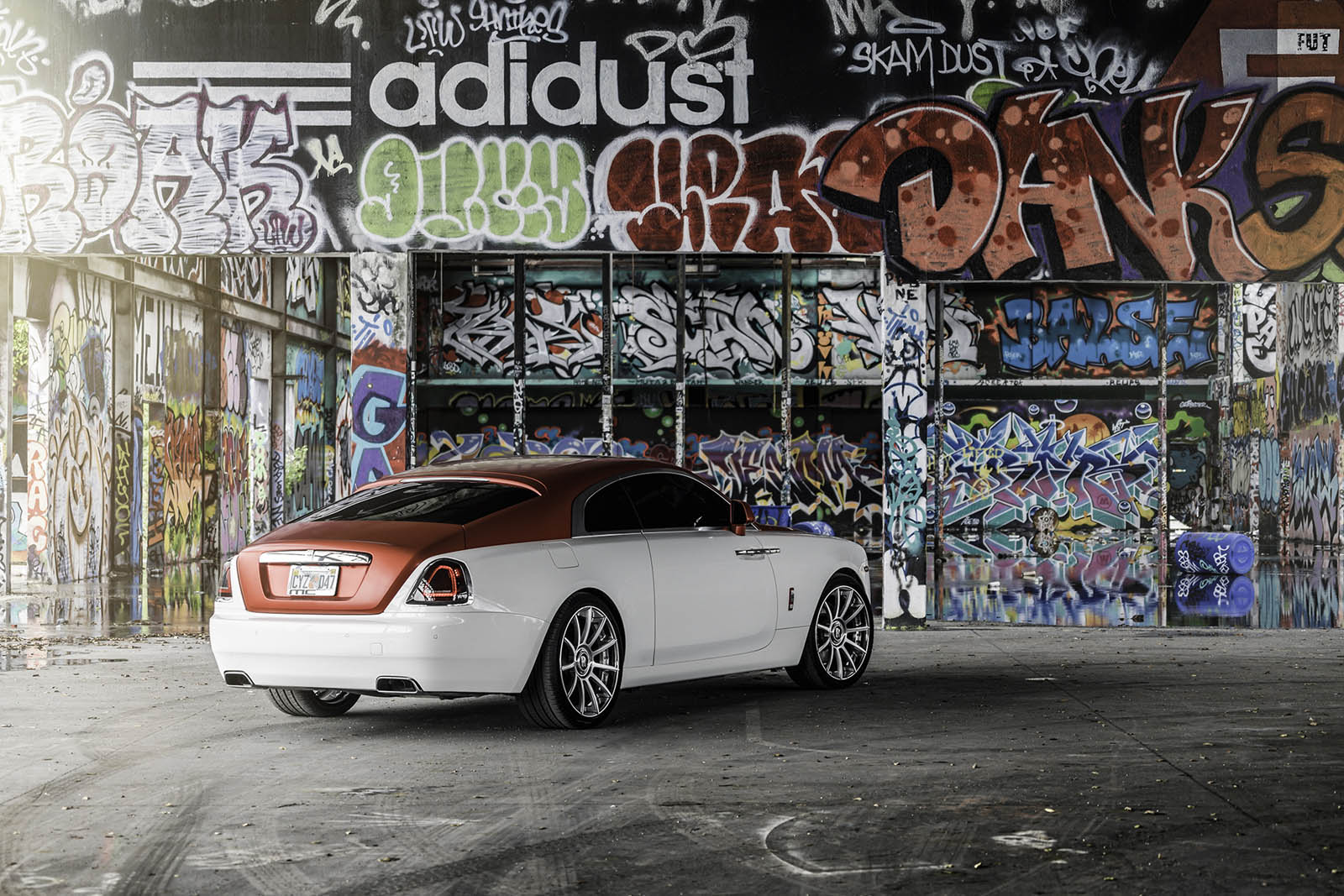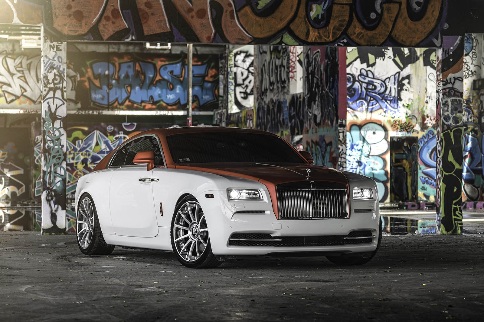 Keeping things classy but with a little extra dose of flash, this Wraith was done up by MC Customs with a classic white lower body and a metallic candy-apple red upper.