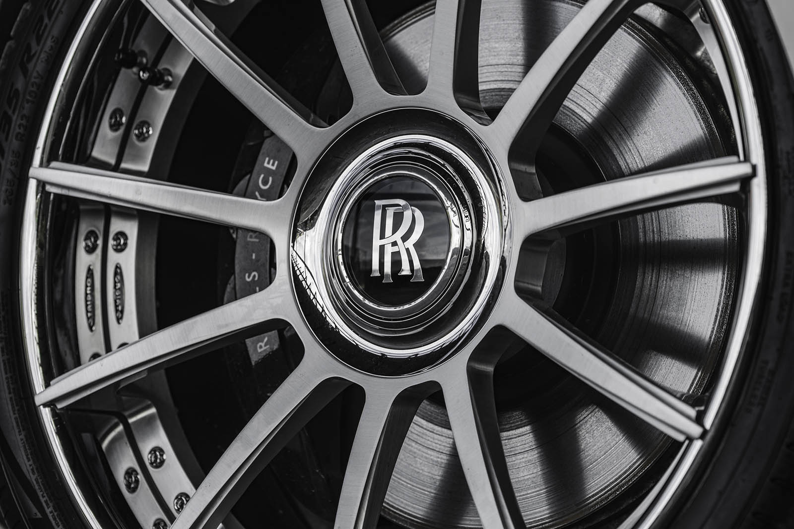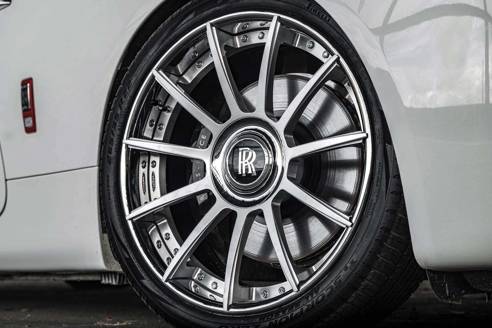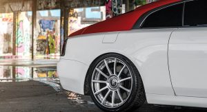 Forgiato provided a set of its Undice-ECL modular alloys, wearing low-profile Pirelli P Zero rubber and fitted to a lowered suspension for a more aggressive stance. It looks like they got Rolls-Royce’s signature self-leveling hubs to fit on there, too.