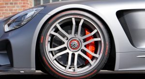 IMSA claims that by adding certain carbon fiber panels, such as the wings, bumper/spoiler assembly, bonnet, roof, boot-lid, and rear wing, the Mercedes-AMG GT S is some 300kg (661lbs) lighter. It now apparently tips the scale at under 1,300kg (2,866lbs), which results in a power-to-weight ratio of 663PS (654hp) per ton.