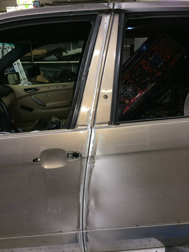 However, their BMW X5 project will probably make you raise your eyebrows in disbelief, because after it was fitted with plenty of speakers, amplifiers, and subwoofers, it had its front and rear doors joined together.