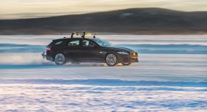 After a few practice runs, at JLR’s Arctic Revi Test Center in Arjeplog, Sweden, in temperatures of -28C (-18F), the athlete was eventually pulled to an average top speed of 189km/h (117mph), by the executive estate, thus smashing the old record by over 76km/h (47mph).