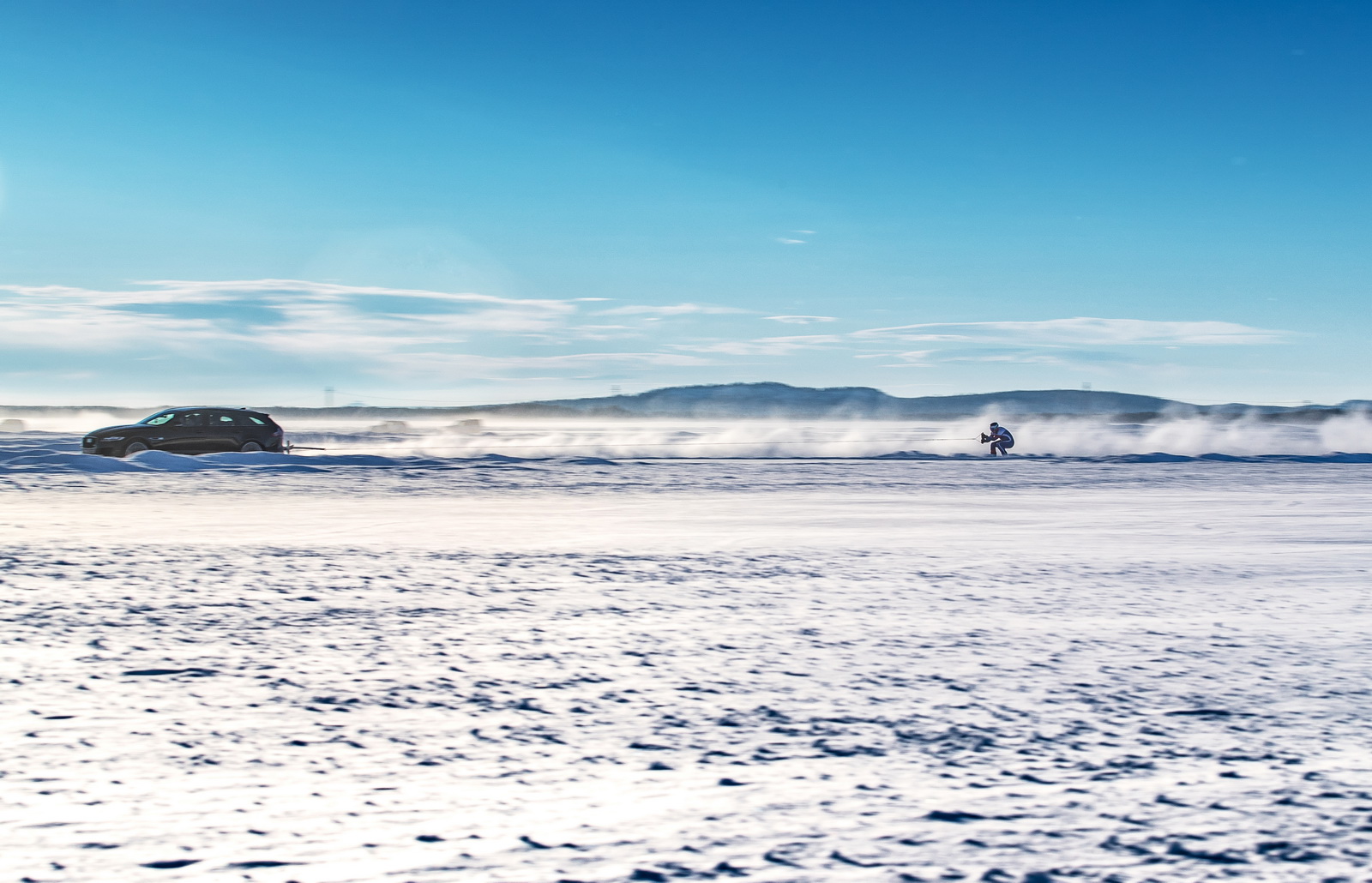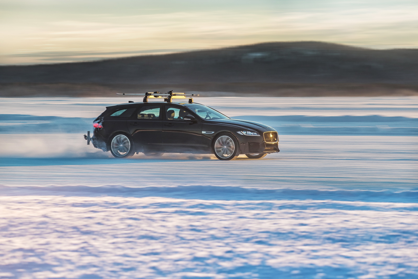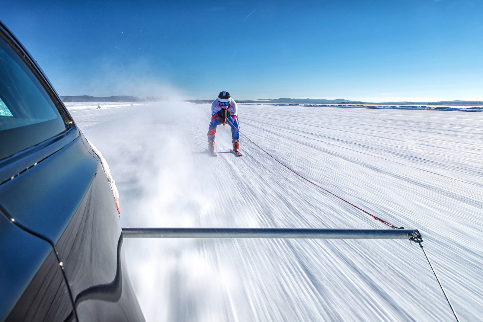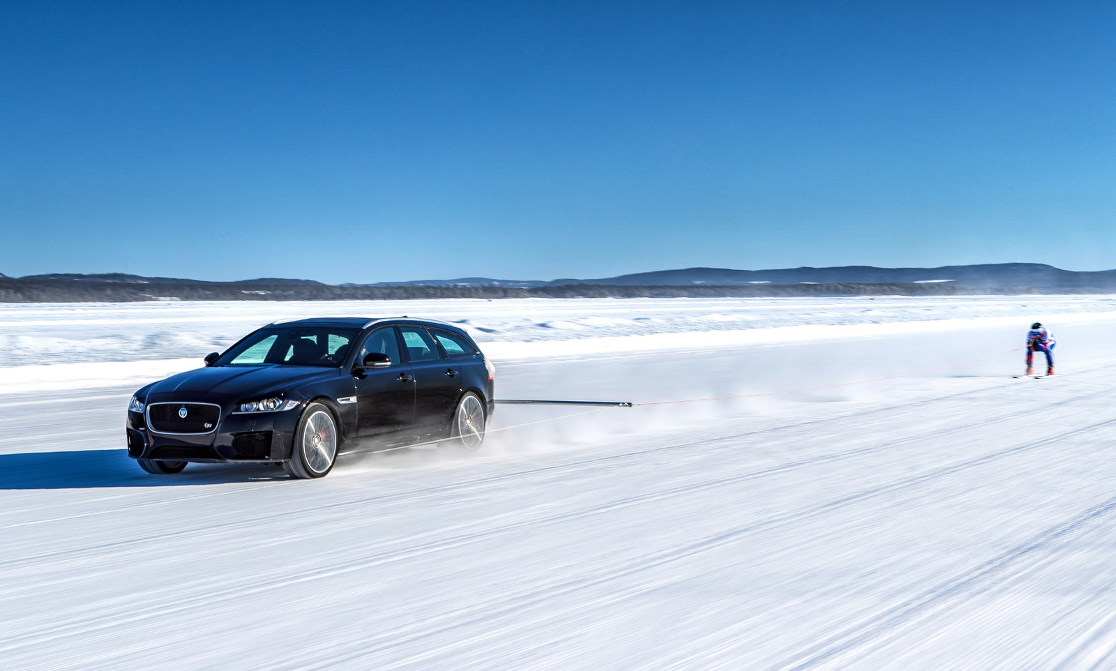 After a few practice runs, at JLR’s Arctic Revi Test Center in Arjeplog, Sweden, in temperatures of -28C (-18F), the athlete was eventually pulled to an average top speed of 189km/h (117mph), by the executive estate, thus smashing the old record by over 76km/h (47mph).
