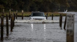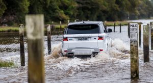 Now, this wouldn’t normally pose a threat for the new P400e PHEV version of the 2019 Range Rover Sport, and its 404PS (398hp) and 640Nm (472lb-ft) of torque, but it encountered roads flooded by the tide.