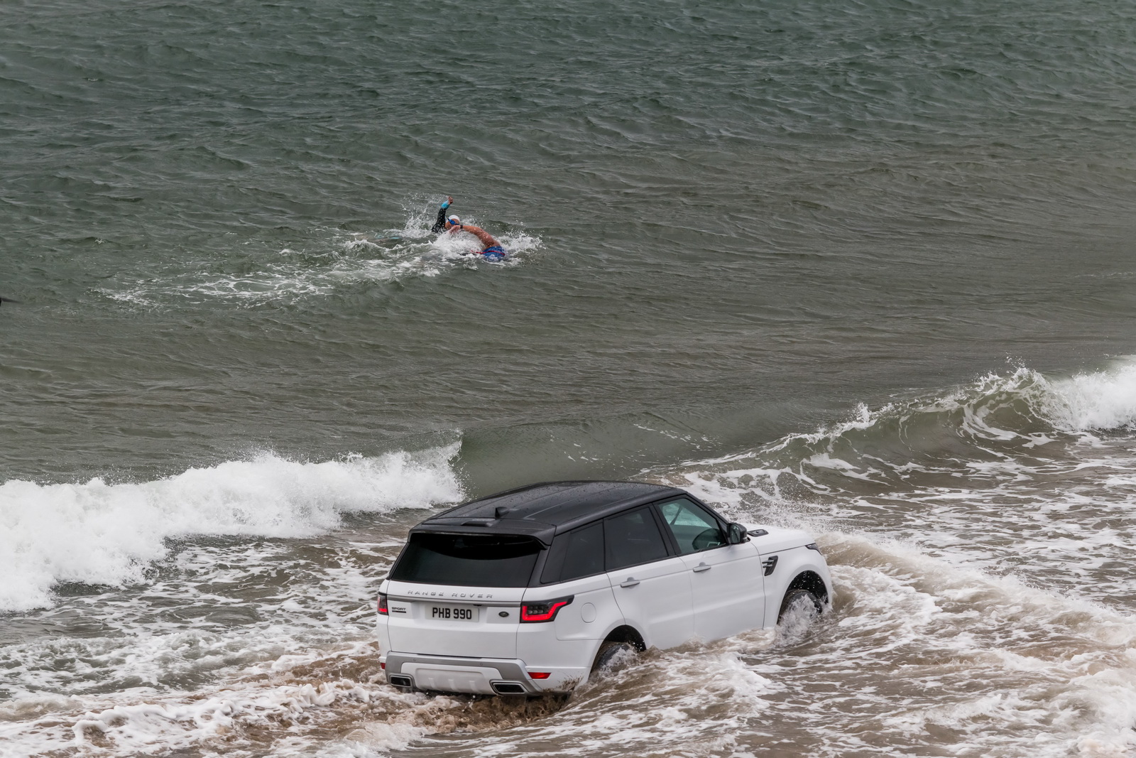 “I’m used to extreme challenges, and this certainly fits into that category. The waves were so powerful, I could see the Range Rover Sport was being buffeted around in the water, but it still made short work of the rising tide across the causeway to Burgh Island”, added Ross Edgley.