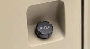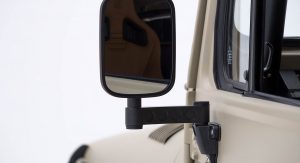 This FJ43 Signature is painted in matte Dune Beige, with custom-crafted fuel cap and larger side mirrors, CNC-machined from aluminum and painted gunmetal gray.
