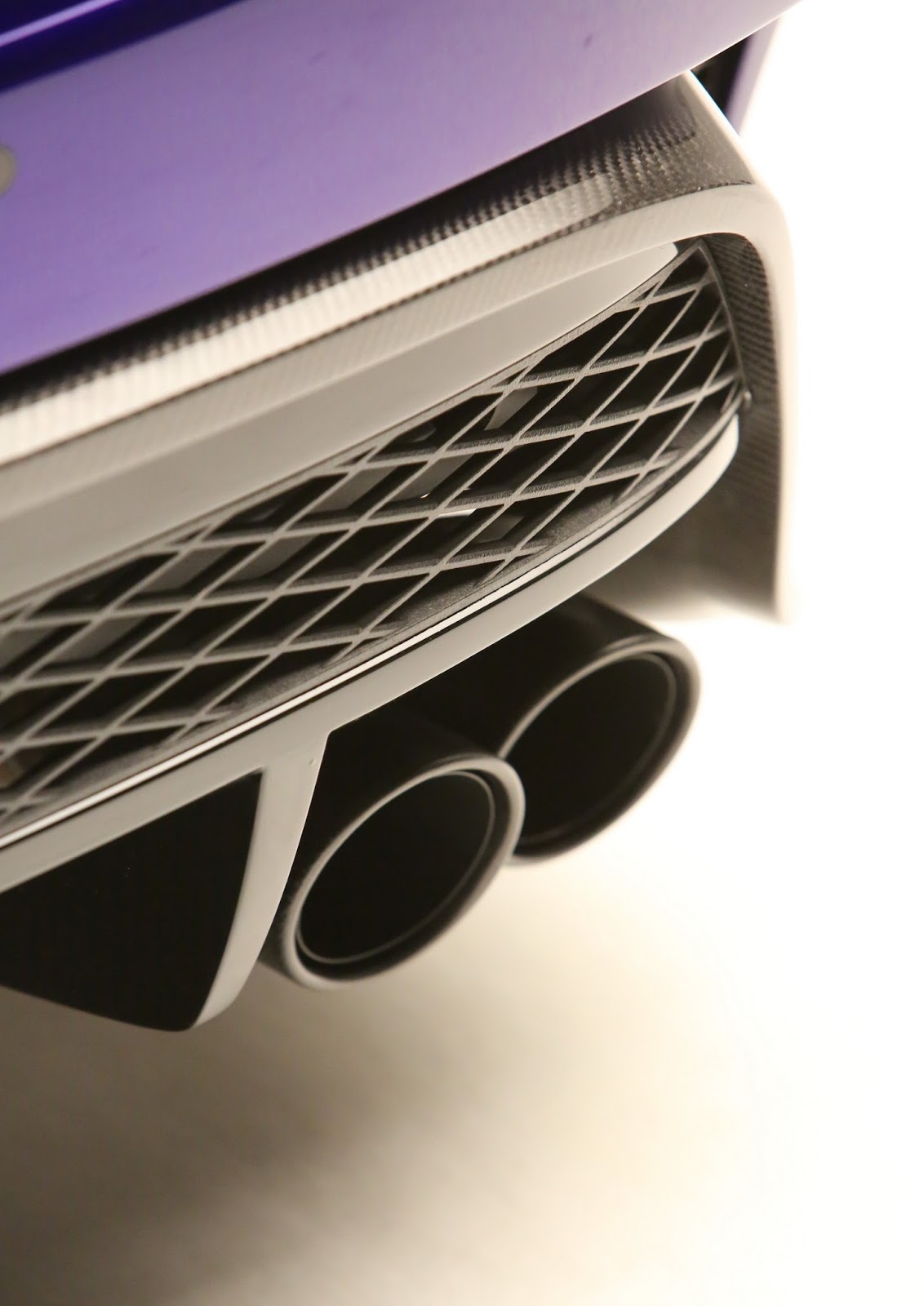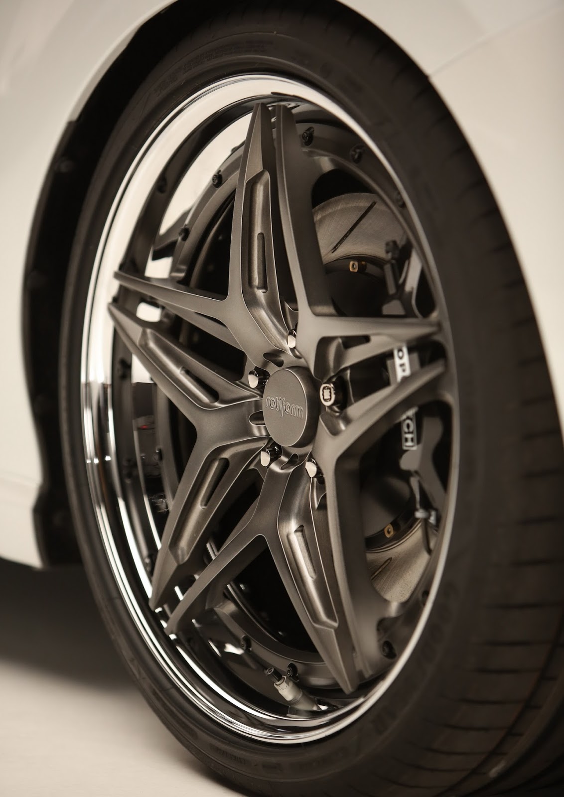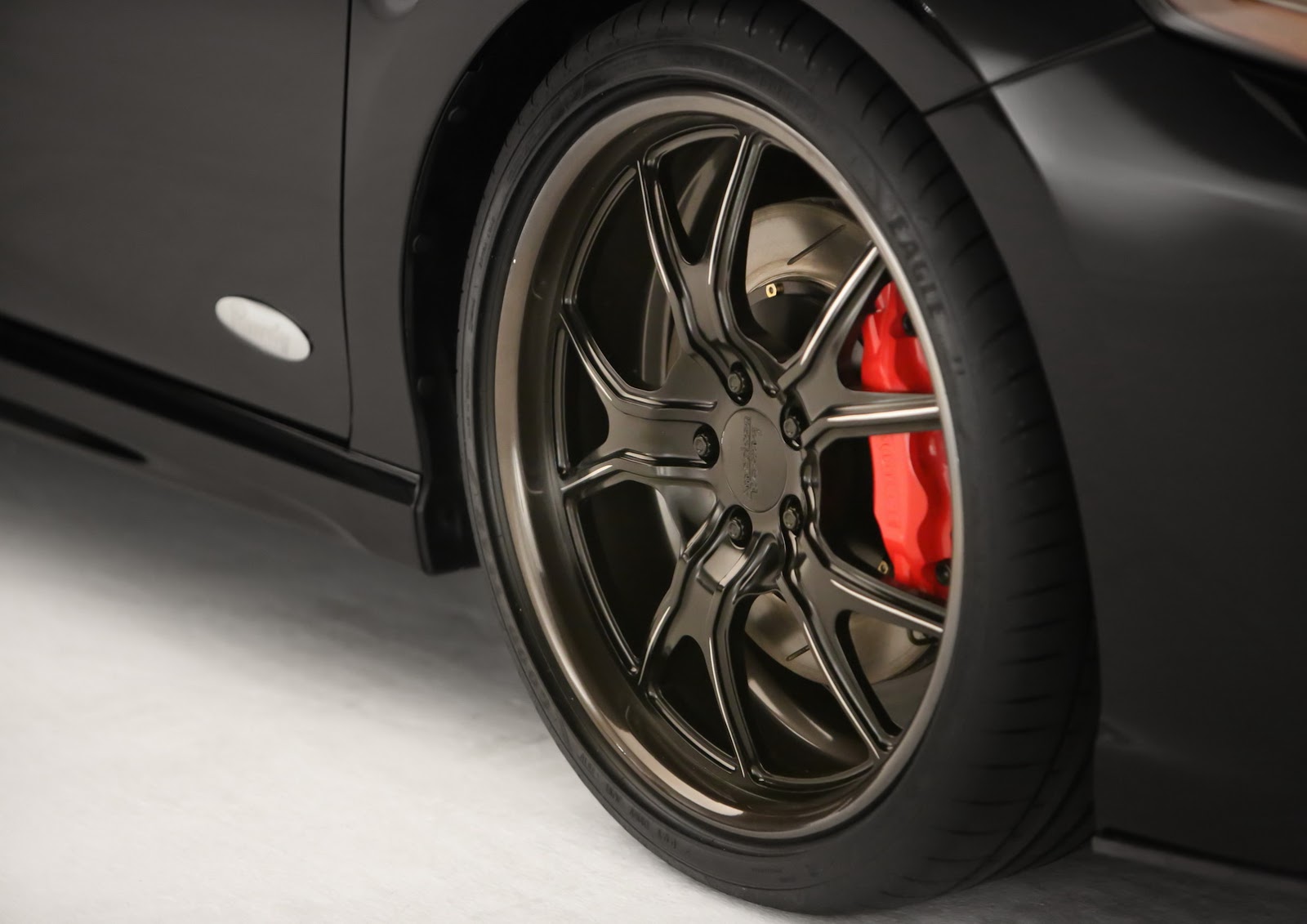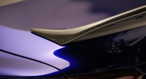 The car’s custom body panels were created using 3D-printing technology, making the hood, front and rear bumpers, rocker panels, rear diffuser and headlight buckets completely unique to this car. Once the multi-piece widebody kit went on, the car was painted with a custom color named “Blurple” and lowered on top of the 20″ Rotiform alloy wheels.