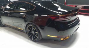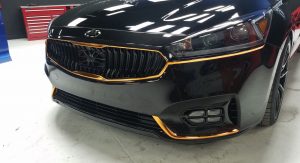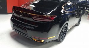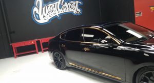 This Kia Cadenza Obsidian was also crafted by West Coast Customs, boasting a lowered suspension with stiffened sport springs, custom 20″ gloss-black Keen wheels and a custom metallic black paint with an ultra-dark ceramic window tint.