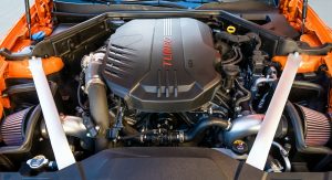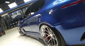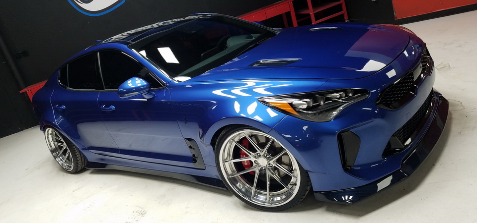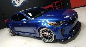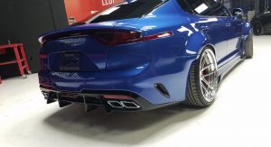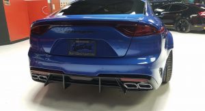 Now, we finally have all the details, such as how the suspension was lowered by 1.4 inches up front and 1.2 inches in the rear, the presence of 21-inch Keen forged wheels, and of course, the lightweight wide body kit meant to keep the Stinger planted at hight speed. As you can see, the rear end is particularly aggressive thanks to the massive diffuser and quad-port exhaust tips.