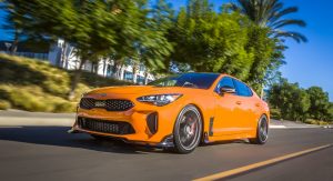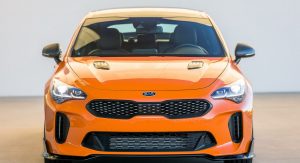 This uniquely modified Stinger is meant to celebrate Kia’s foray into making high-performance aftermarket parts available for purchase through certain suppliers. The so-called Creamy-Orange paint scheme further highlights the car’s exterior body accent kits by Air Design USA, which include the rear spoiler, rear diffuser as well as the redesigned hood vents.