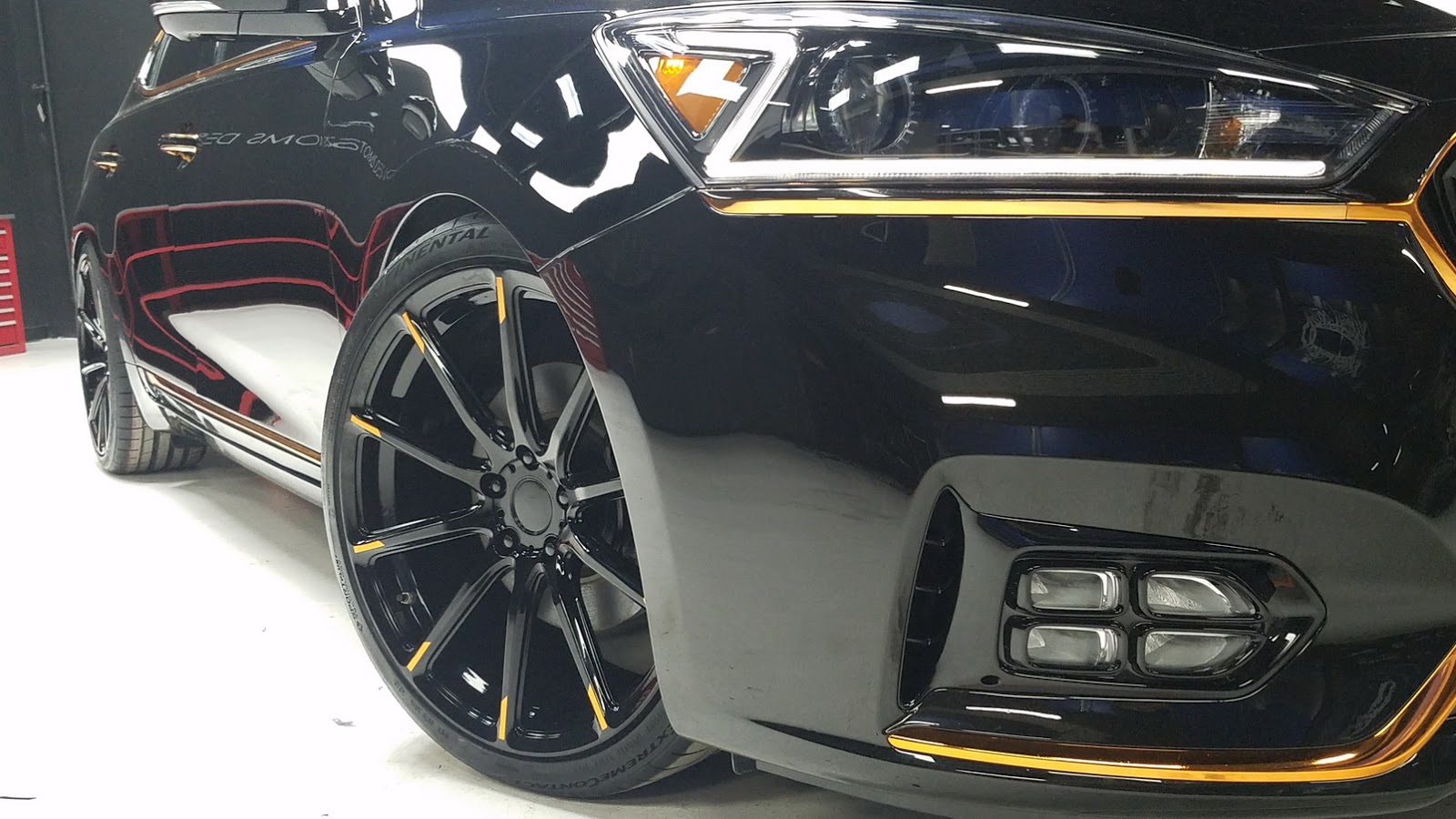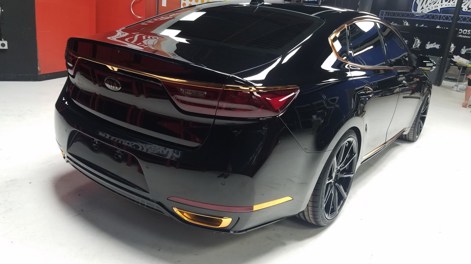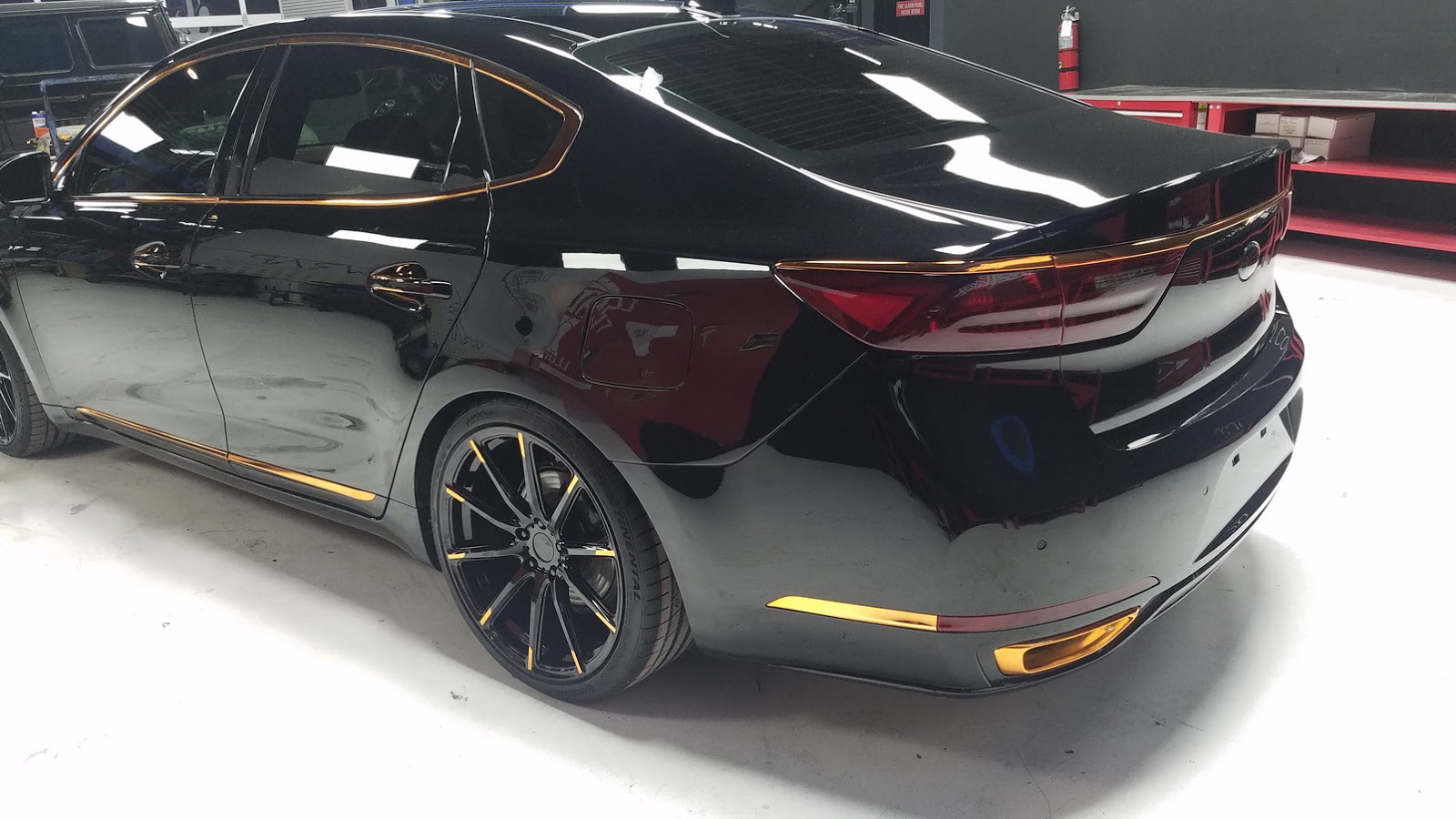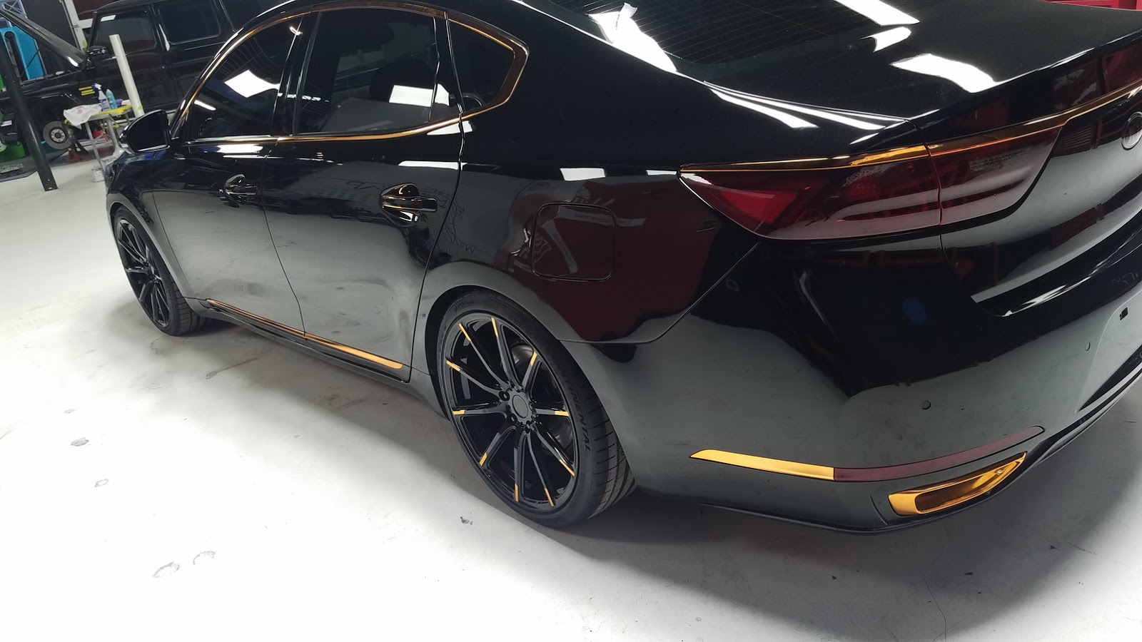 This Kia Cadenza Obsidian was also crafted by West Coast Customs, boasting a lowered suspension with stiffened sport springs, custom 20″ gloss-black Keen wheels and a custom metallic black paint with an ultra-dark ceramic window tint.