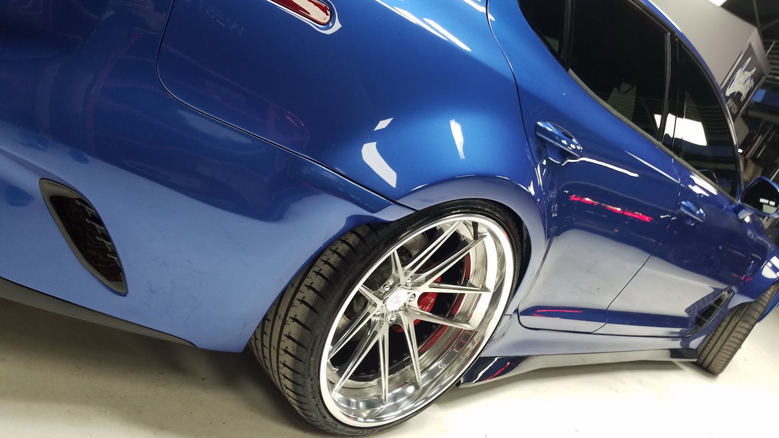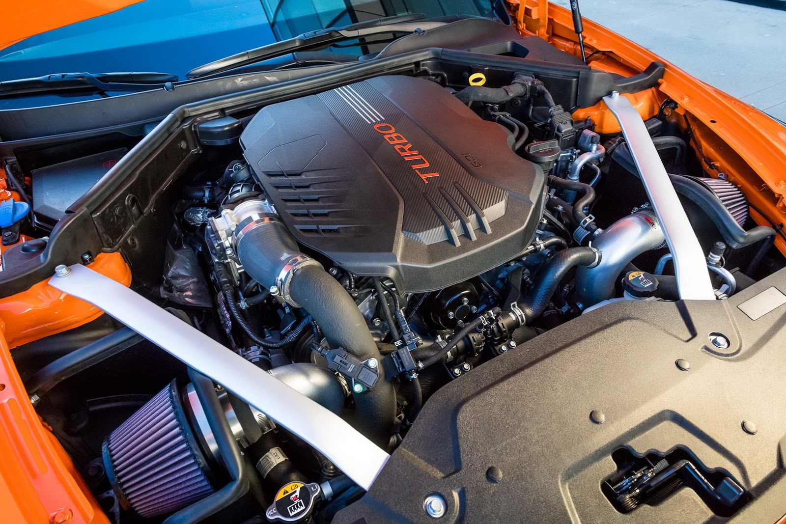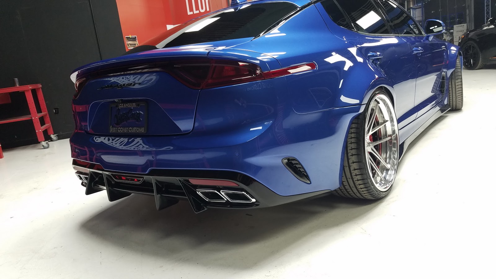 Now, we finally have all the details, such as how the suspension was lowered by 1.4 inches up front and 1.2 inches in the rear, the presence of 21-inch Keen forged wheels, and of course, the lightweight wide body kit meant to keep the Stinger planted at hight speed. As you can see, the rear end is particularly aggressive thanks to the massive diffuser and quad-port exhaust tips.