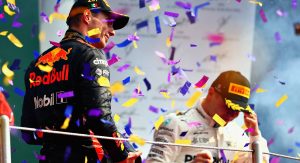 Verstappen, who started the race second on the grid behind Sebastian Vettel, had a brilliant start and was able to sneak up the inside of Vettel into turn two. At the same corner, Vettel and Hamilton came together, leaving the Mercedes driver with a puncture and Vettel’s Ferrari with a damaged front wing.