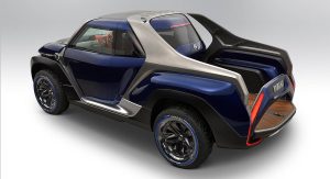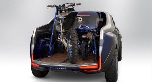 The pickup bed is even further separated structurally from the cab than usual, sporting enough space to transport a motorcycle or two (or a quad ATV) for adventures off-road.